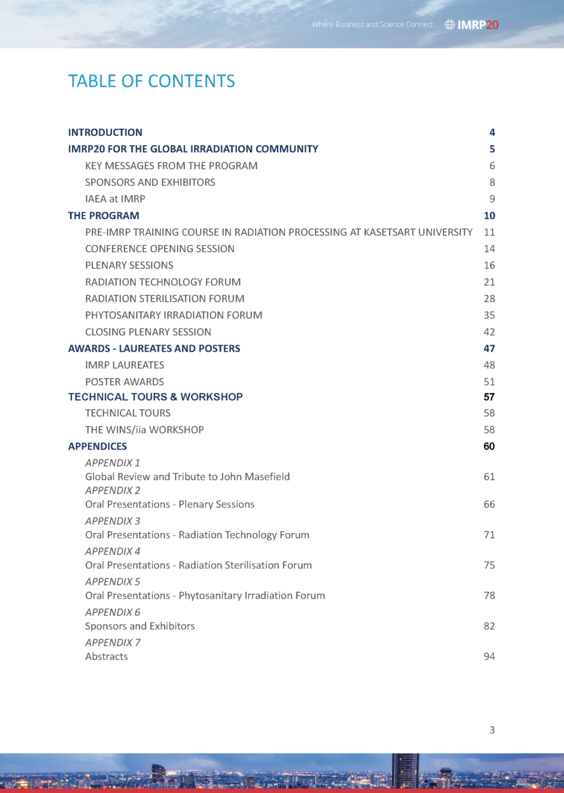 This new publication captures the highlights and key messages for IMRP and summarises the program content. Additionally, the Appendices contain links to many of the oral presentations given by many eminent members of iia and the irradiation community.