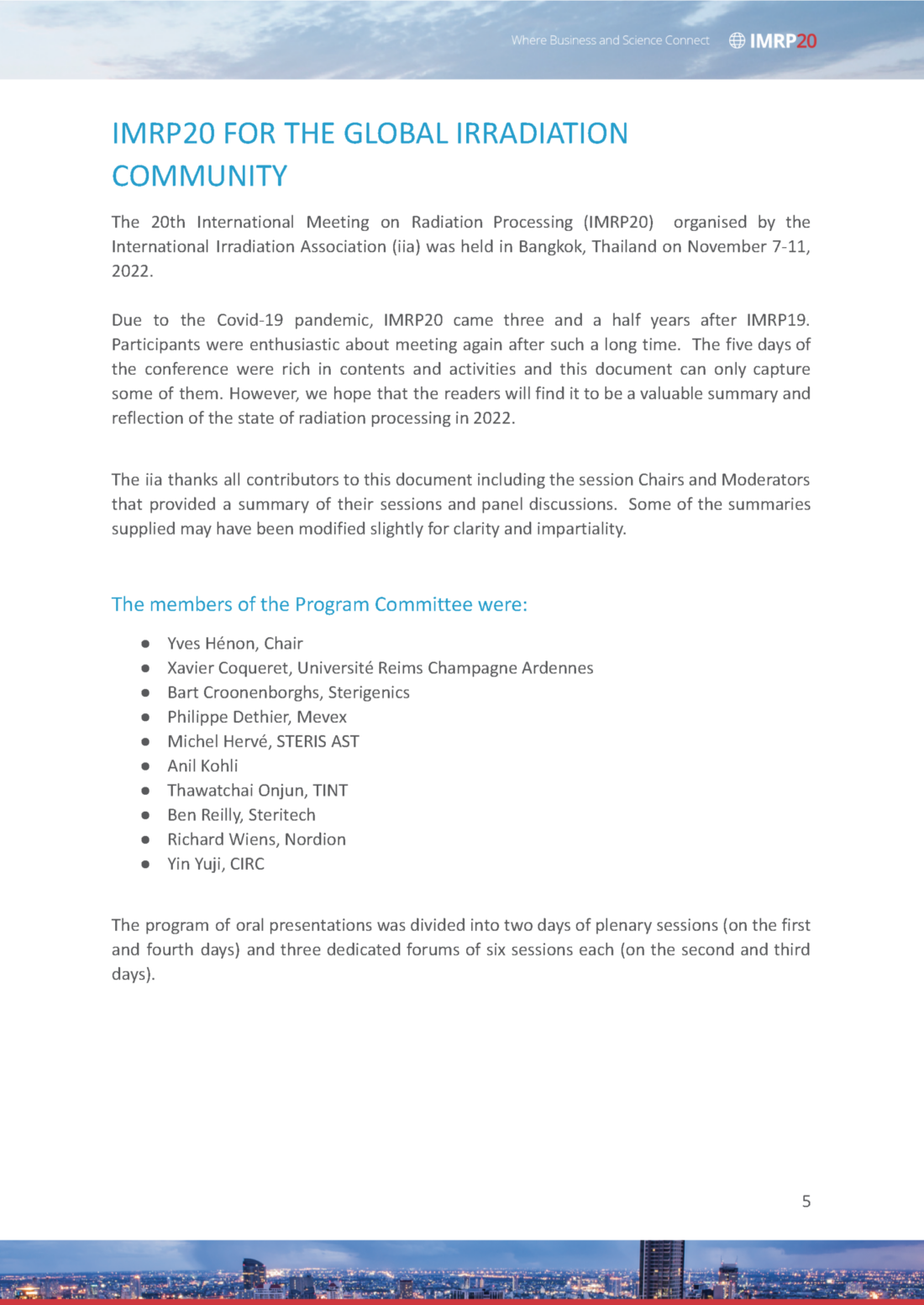 The iia is pleased to announce the publication of its review of the 20th International Meeting on Radiation Processing (IMRP20). The highly successful IMRP20 was hosted by iia in Bangkok during November 2022 and included an innovative program of presentations and panel discussions, Laureate and poster awards, an industry exhibition, training, workshop and networking opportunities.